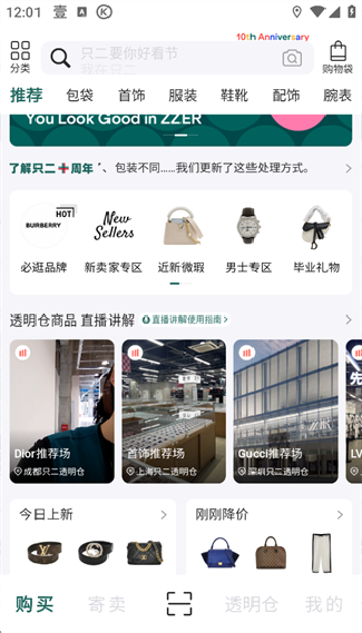 6. ZZER只二APP设有直播讲解(点播)服务。要是无法前往线下门店,讲解员能够帮你查看所有门店寄卖商品的成色以及瑕疵情况,还能够进行上身试背试戴操作,就如同你本人在现场一般。