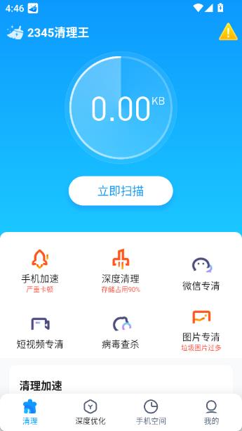 1、先在手机应用商店下载并安装清理大王app,打开后即可进入主界面。