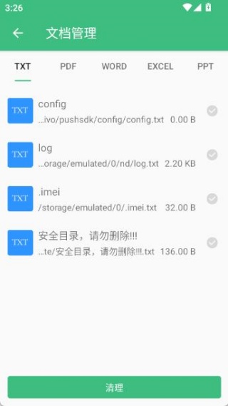 1、智能检测到每一个应用的文件占用数据,方便查询;