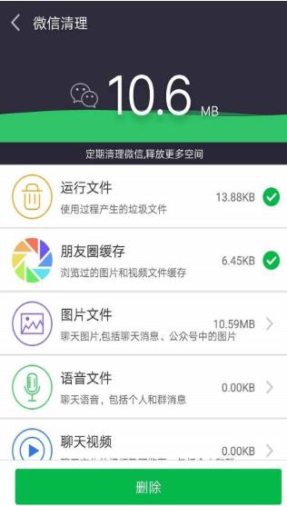 3、能够针对微信朋友全的文件进行专项扫描并清理;