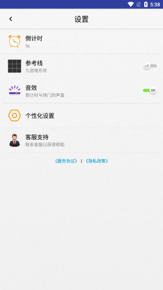 3、在设置页面中可以进行倒计时、参考线、音效以及个性化设置等操作;