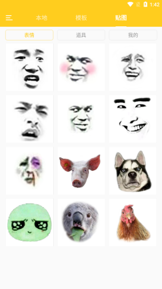 4、在贴图页面中包括表情、道具以及我的贴纸,让大家随时了解各类贴纸。