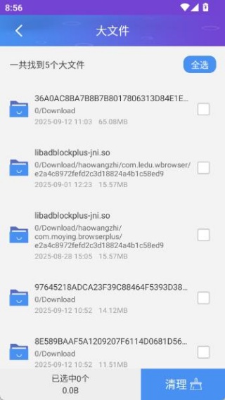 4、选择文件夹以后,可以在app中实现一键快速清理;