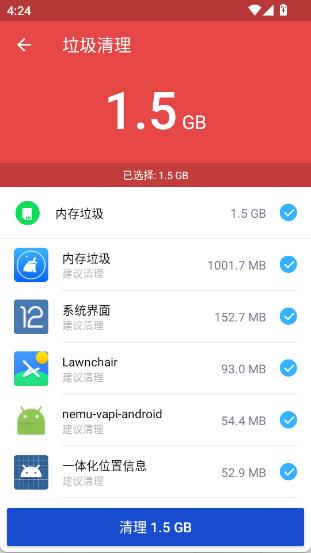 2、【垃圾清理】专业的垃圾文件扫描引擎,清理设备中的多余进程,缓存以及垃圾文件;