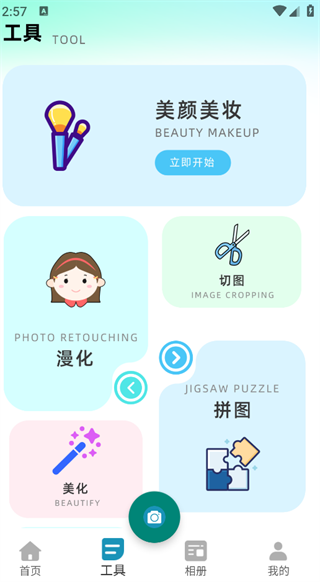 3. 点击页面下方的‘工具’,即可看到美颜美妆、漫化、拼图等功能;