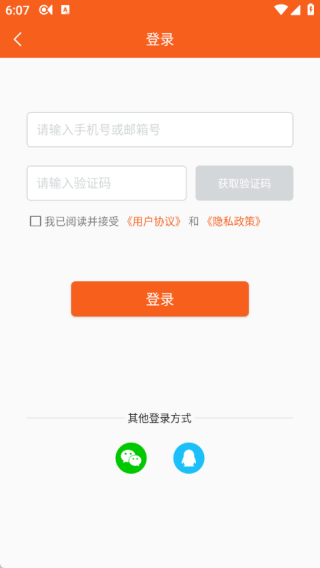 3、在登录页面中可以利用手机号或邮箱号进行登录,也可以用微信和QQ登录;