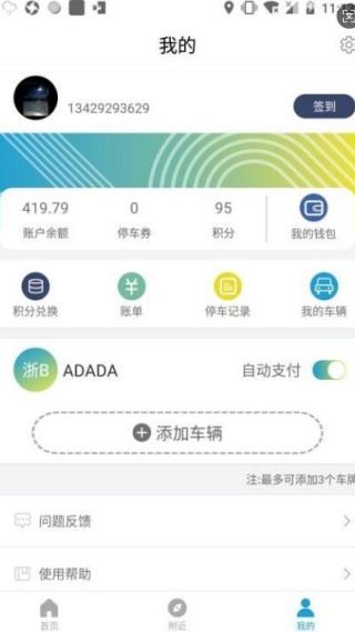 2、在我的页面进行车辆绑定,添加车牌信息,停车更方便;