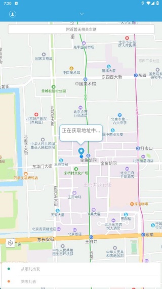 2、点击目的地搜索按钮,快速查询,确定并可以预约出行服务;