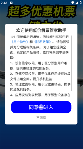 1. 下载并安装APP,点击‘同意并进入’,即可进入主页面;
