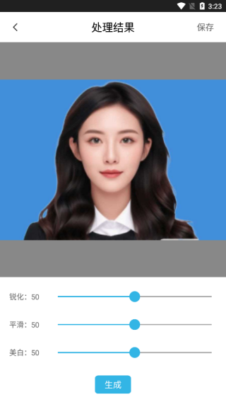 3、点击人像美容,再选择相册中的图片,再调整锐化、平滑以及美白等参数进行生成;
