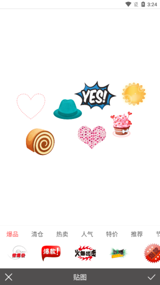 4、海量趣萌贴纸类型,用户可自行选择使用,一张图可使用多张贴纸;