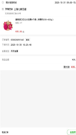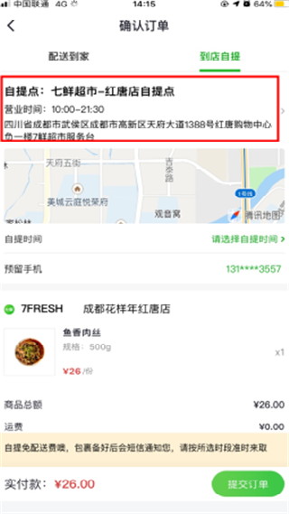 2. 选好欲前往的七鲜超市,查看营业时间与地址,确认无误后下单,便可实现到店自提。