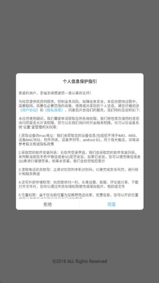 1、安装进入app,系统展示隐私政策和用户协议,点击同意;