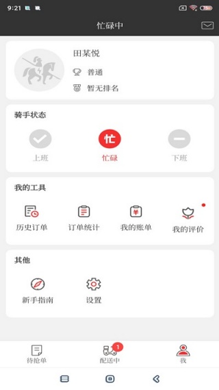 4、注册并登录进入app,我们在个人页面,可以掌握接单详情。