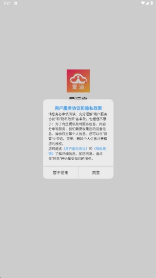 1、安装app,查看用户协议和隐私政策,点击同意;