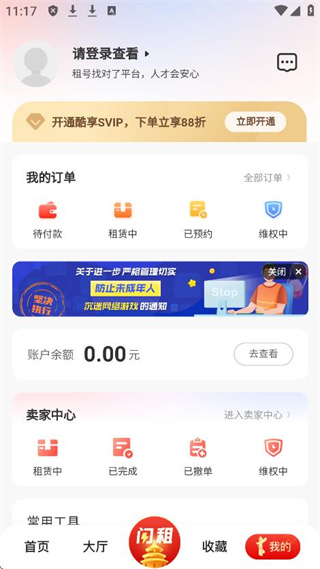 4、进入【闪租】专区既可租赁优质账号,也可快速发布出租。