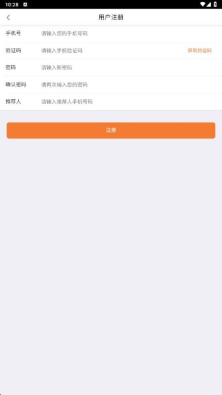 3、进入到账号注册页面,输入手机号、验证码、密码、推荐人信息即可;