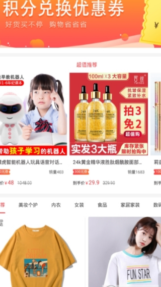 2、首页推送的产品很丰富,专业好用的购物平台,产品类型多多;