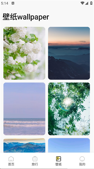 4. 点击页面下方的‘壁纸’,即可看到精美的旅行风景壁纸,可以根据喜好进行选择。