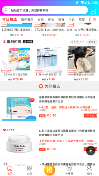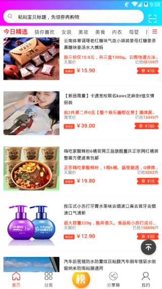 1、智能找劵功能,直接复制商品的链接打开应用即可进行自动找劵;