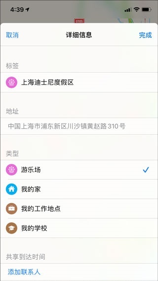 4、进入详细信息界面,在这里选择类型,以及添加联系人之后,点击完成;