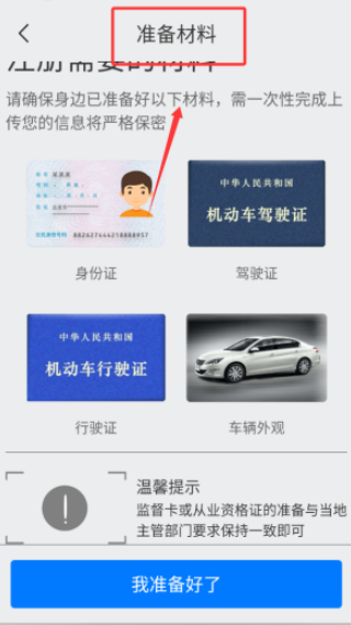 2、提前准备身份证、驾驶证等必备材料,完成线上资料提交与审核;
