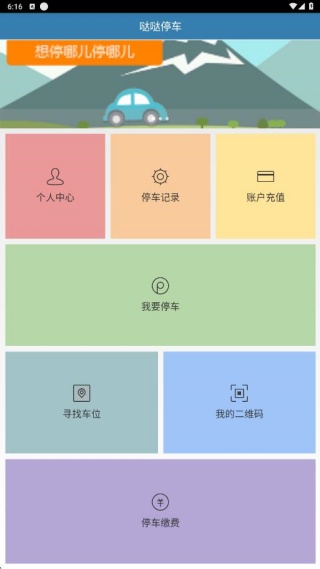 1、安装进入app,我们能看到个人中心、停车记录、账户充值等功能;