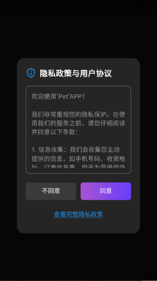 1. 下载并安装APP,点击‘同意’,即可进入主页面;