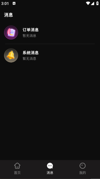 3. 点击页面下方的‘消息’,即可看到订单消息、系统消息等;