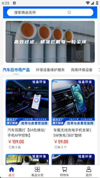 铭嘉环保可是一款超棒的综合性购物软件哦!它把汽车用品服务和环保设备购物完美融合在一起啦。在这里,用户能找到各种各样的汽车用品,轻松满足汽车养护需求。同时,还有丰富的环保设备供你挑选,助力你开启环保生活。强烈推荐有需要的朋友们赶紧下载使用呀!