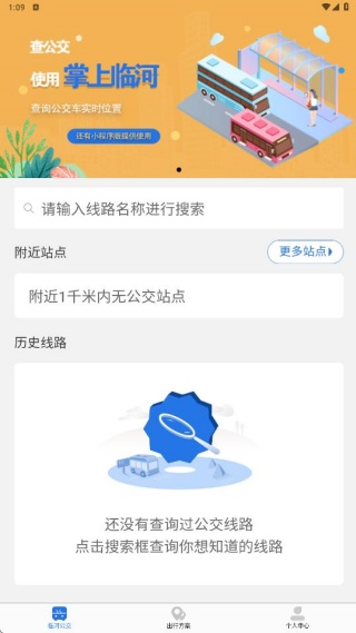 2、进入临河公交页面,我们能搜索线路、附近站点,信息全面;