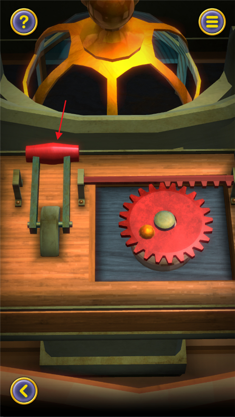 1、第一关前几个步骤是有提示的,这里我们就说没有提示的,转动齿轮后,拉动旁边的操纵杆;
