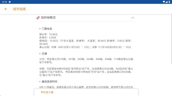1、在线收听香山景区语音讲解,带来更多您不知道的香山景区故事;