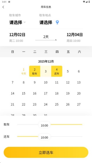 3、填写租车订单的时候,用户可以选择自己的租车时长;