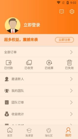 4、我得专区,为你带来团队订单查询以及收益统计查询等。
