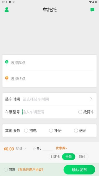 1、用户可以随时在app发布拖车信息,以便可及时得到帮助;