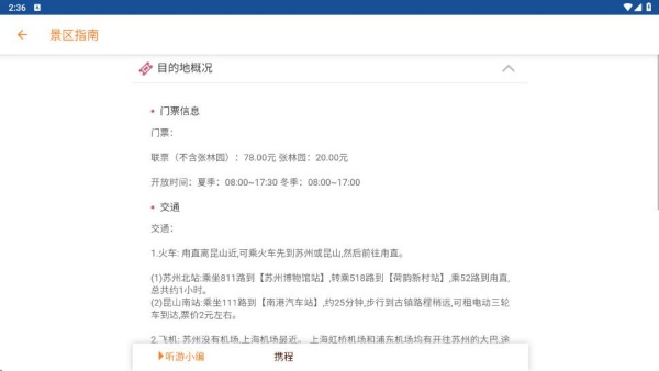 2、在景区指南板块,我们能掌握景区概况和门票费用等;