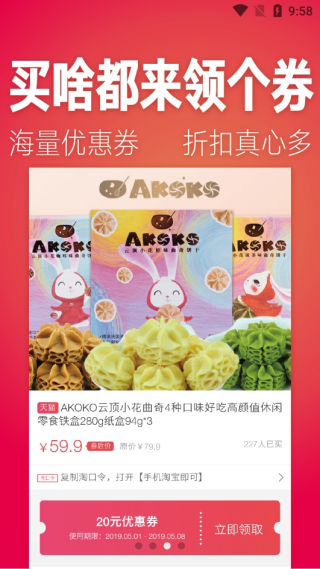 3、支持详细的产品介绍,还有大量的优惠券领取;