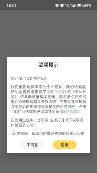 1、安装app进入,查看用户协议和隐私政策,点击同意进入;
