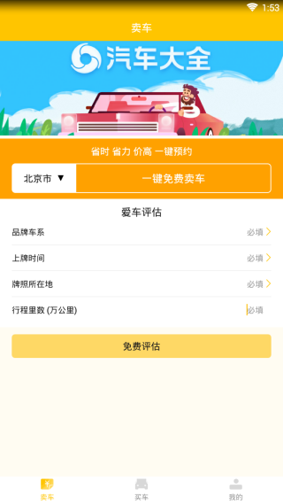 1、车辆评估,根据品牌车系、上牌时间和牌照所在地等就能填写信息;