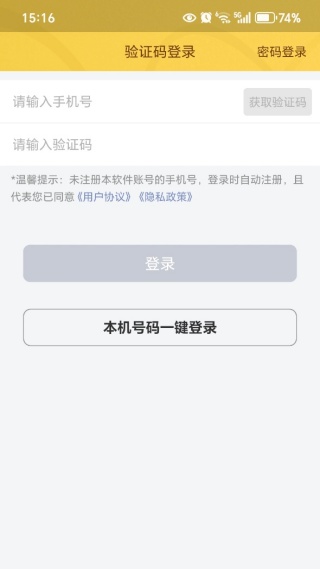 2、进入验证码登录页面,输入手机号和验证码即可进入 app;