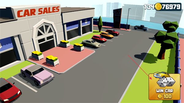 2、抵达可购买商品的商城区域后,点击页面右侧的wincar按钮,花费一百货币参与抽奖活动,以此方式获得新的车辆。