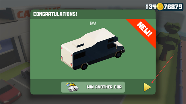 3、参与抽奖并成功获得新车后,可点击黄色箭头关闭这个提示界面,也能选择继续参与抽奖。