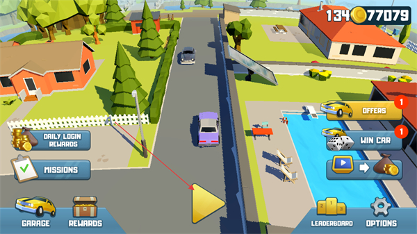 采用圆润可爱的卡通3d造型,角色与场景色彩明快鲜活,视觉上毫无压迫感,为驾驶逃亡构建出轻松愉悦的整体氛围。