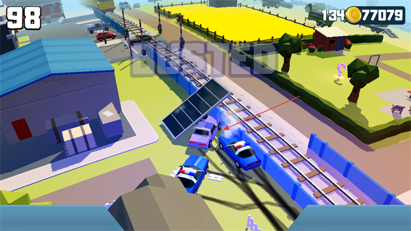 4、要是屏幕上出现busted的提示,那就表明挑战未成功,此时需要重新开始这一关卡,注意不要被警车围住,也不要待在铁轨这类危险的地方。