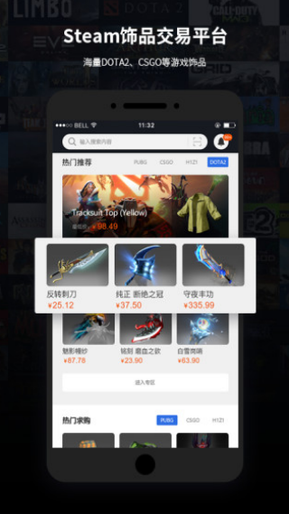 1、可为用户搭建游戏饰品交易平台,卖家与买家身份均可选择;
