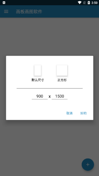 1、启动应用后,在首页点击"+"按钮创建新画布,支持自定义画布尺寸规格;