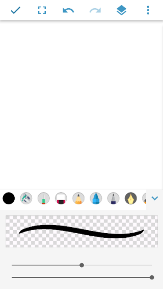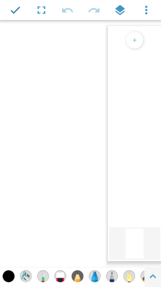 2、进入创作界面后,可从多种笔刷样式中选择,点击"+"可复制当前画布内容;