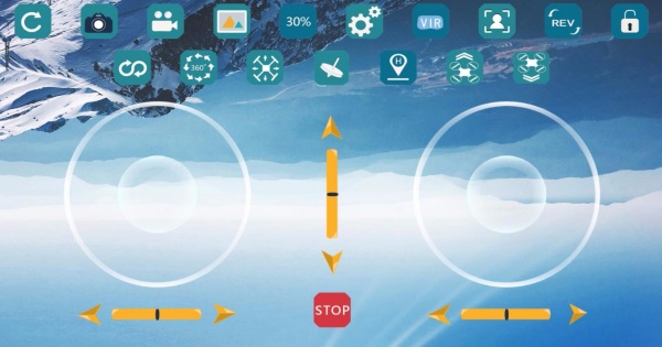 1、启动应用后点击"start"按钮进入无人机操控界面,点击问号图标可查看操作指引;