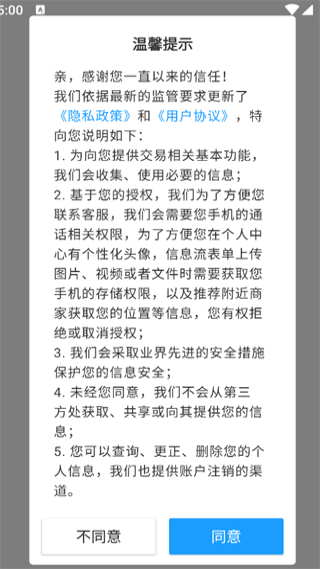 1、完成下载安装后启动应用,阅读并同意用户协议进入主界面